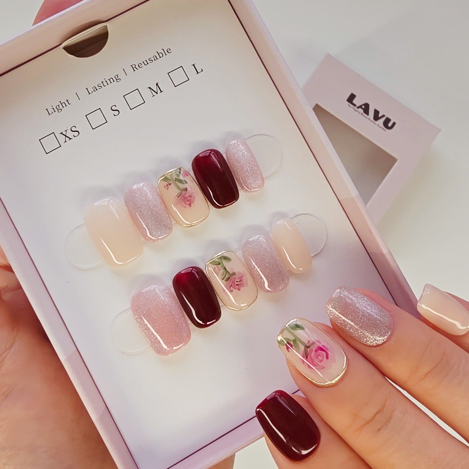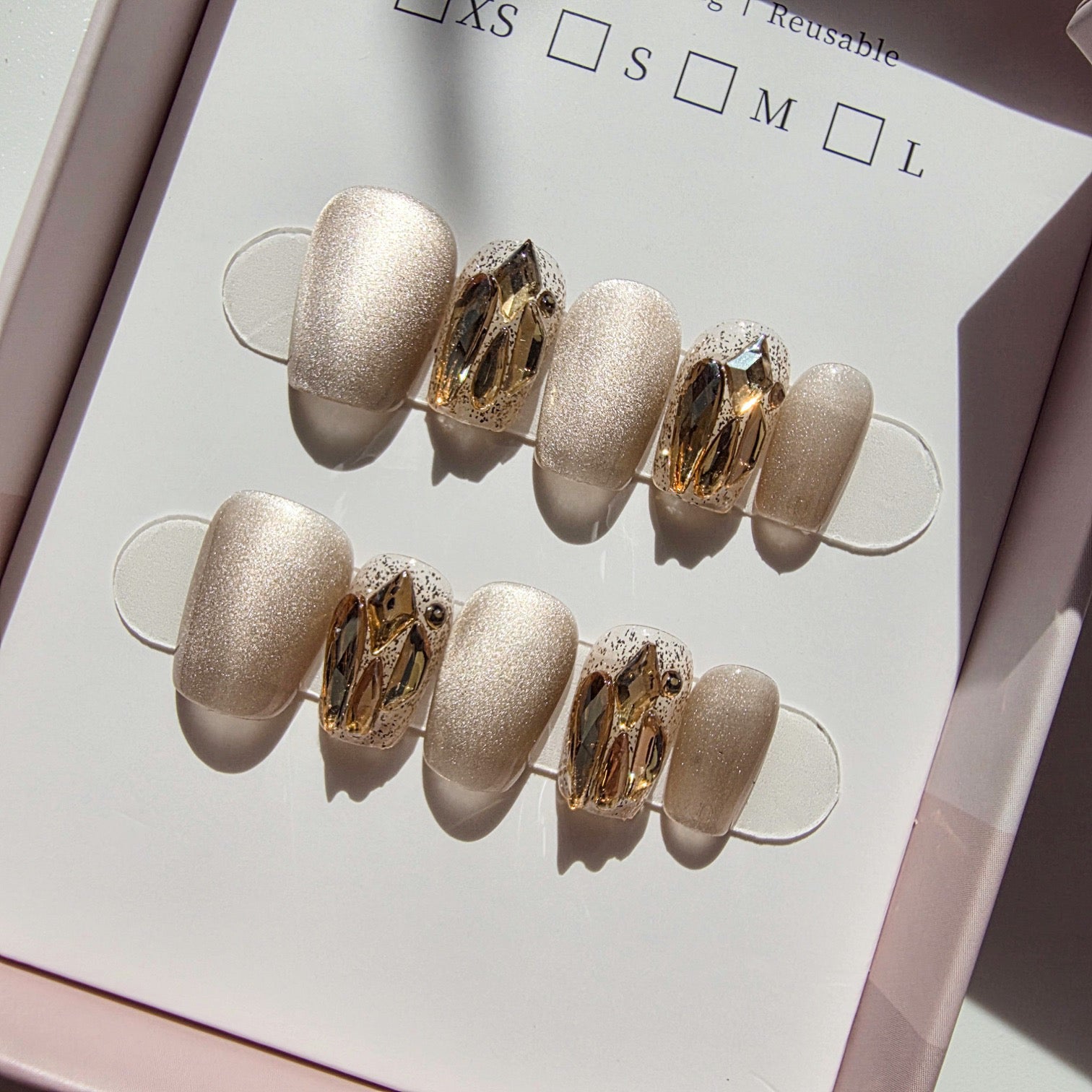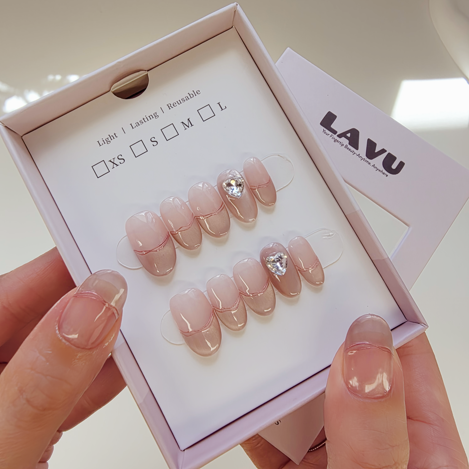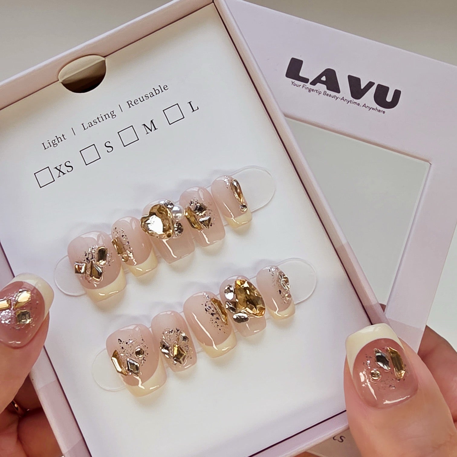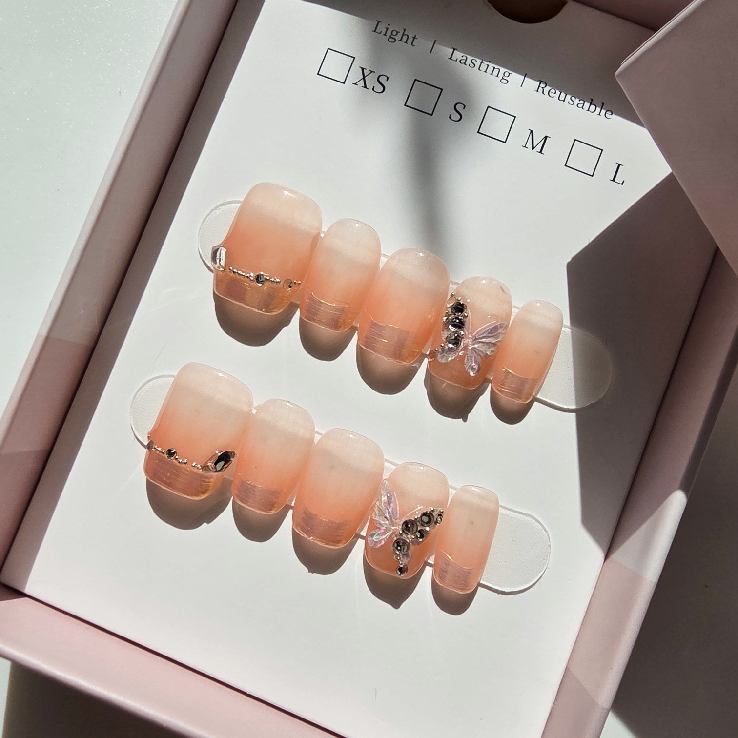 Skip all the steps of base gel, color, top coat, curing, and decorating. Our press-ons are handmade and pre-designed, ready to wear.