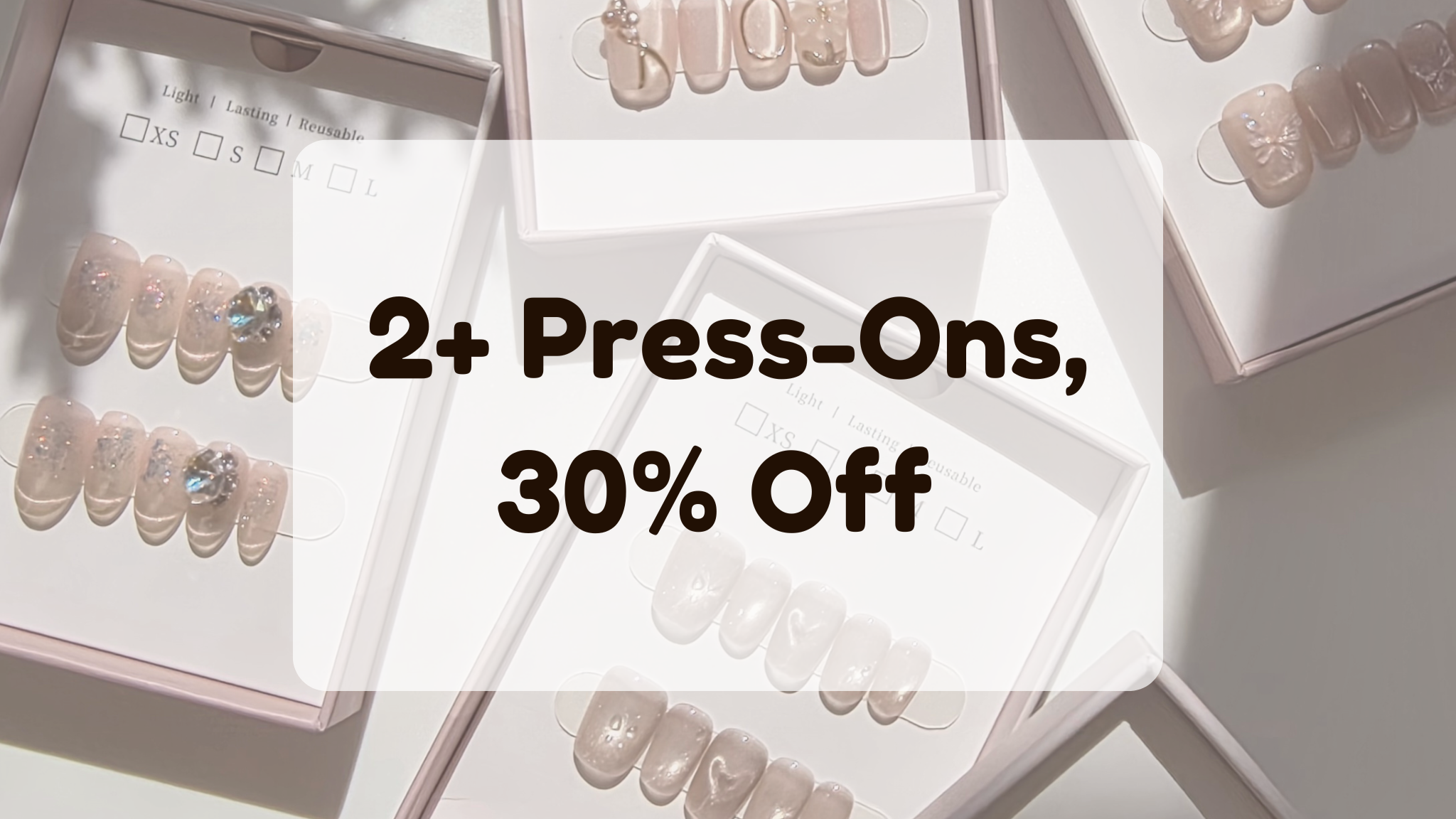 Buy 2 or more press-on sets and enjoy 30% off — including any care & tools you add.