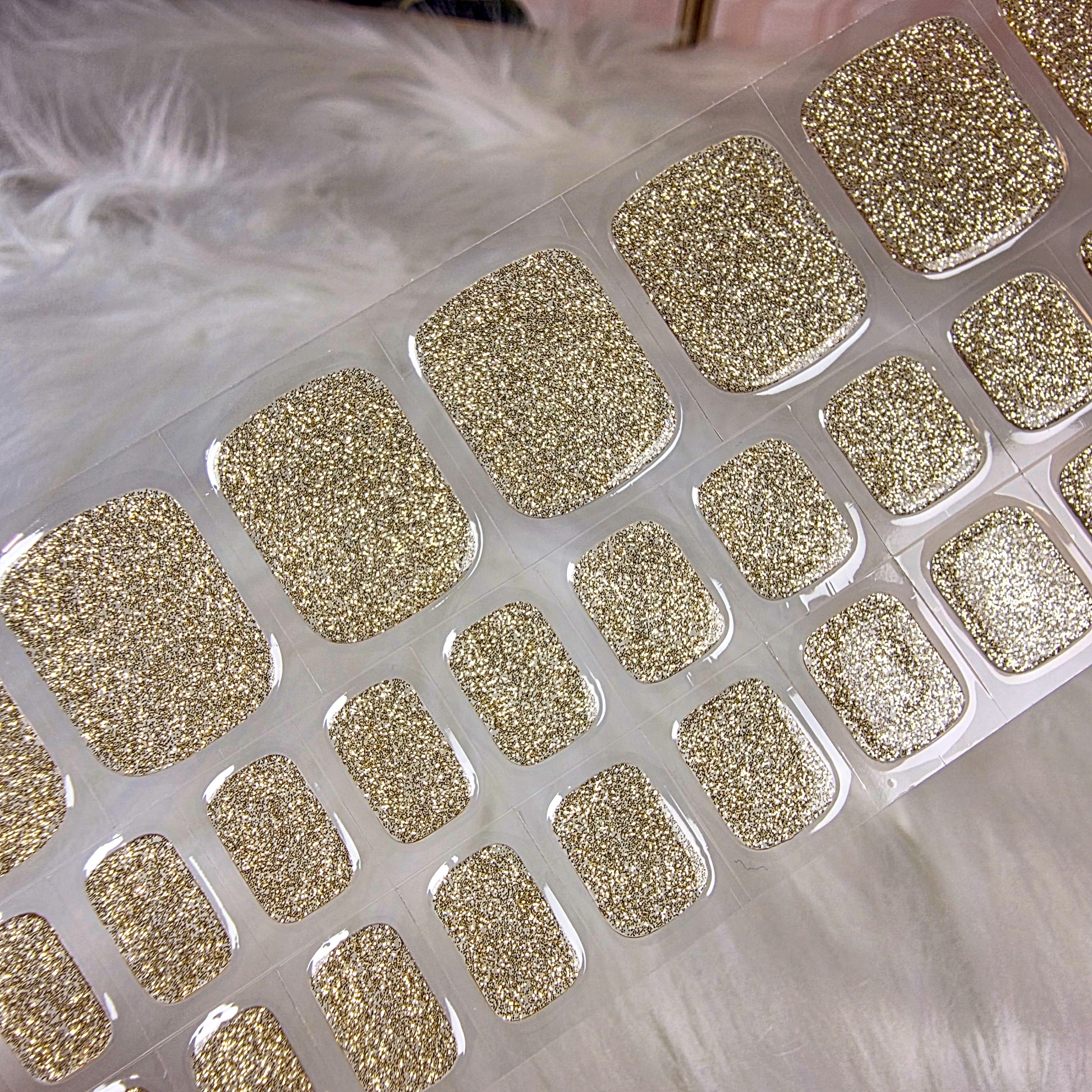 Golden Hour is a full–glitter gold design inspired by the warm, radiant glow just before sunset. Packed with fine golden sparkles, it creates a luxurious, eye-catching pedicure that shines beautifully with every movement. Perfect for parties, holidays, beach nights, or anytime you want your toes to look glamorous and luminous.