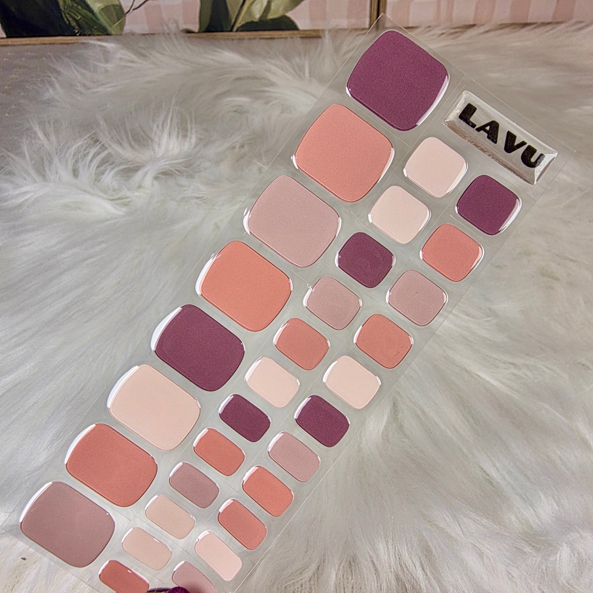 A cosy blend of soft peach, muted rose, and deep plum tones that instantly elevate any sandal or summer look.