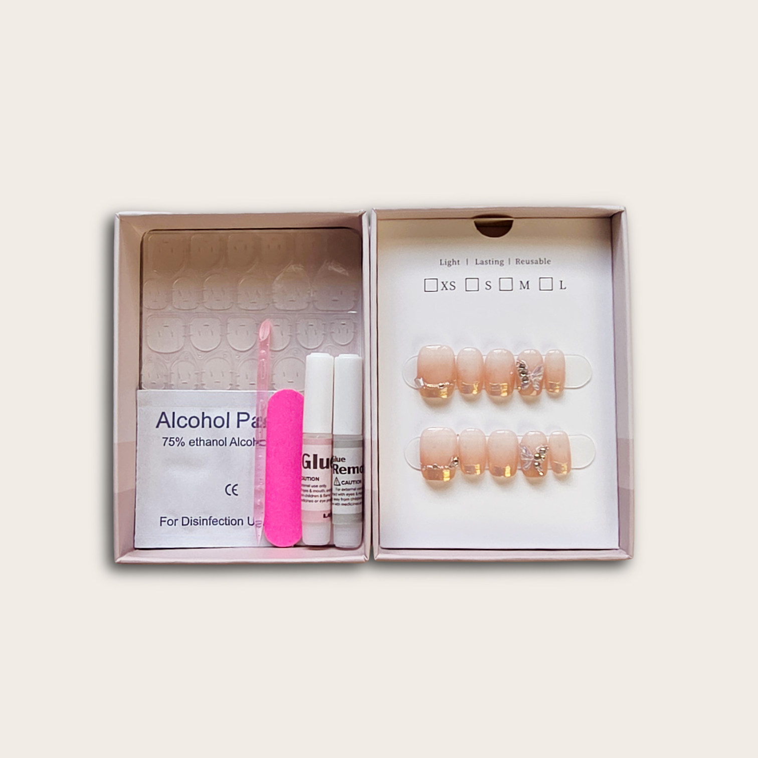 Unlike mass-produced 24–30pcs sets made in factories, ours are crafted with true gel formulas and higher-density layers, giving you a smoother surface, stronger structure, and a premium shine that looks just like a salon set.