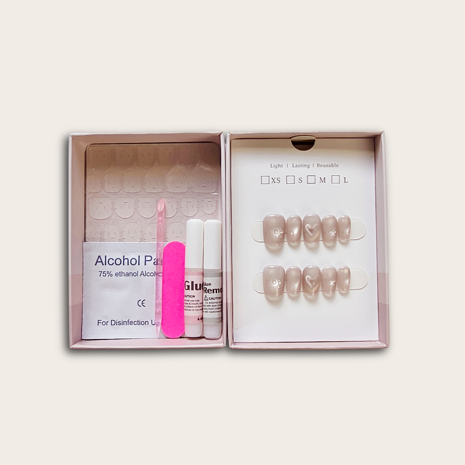 Unlike mass-produced 24–30pcs sets made in factories, ours are crafted with true gel formulas and higher-density layers, giving you a smoother surface, stronger structure, and a premium shine that looks just like a salon set.
