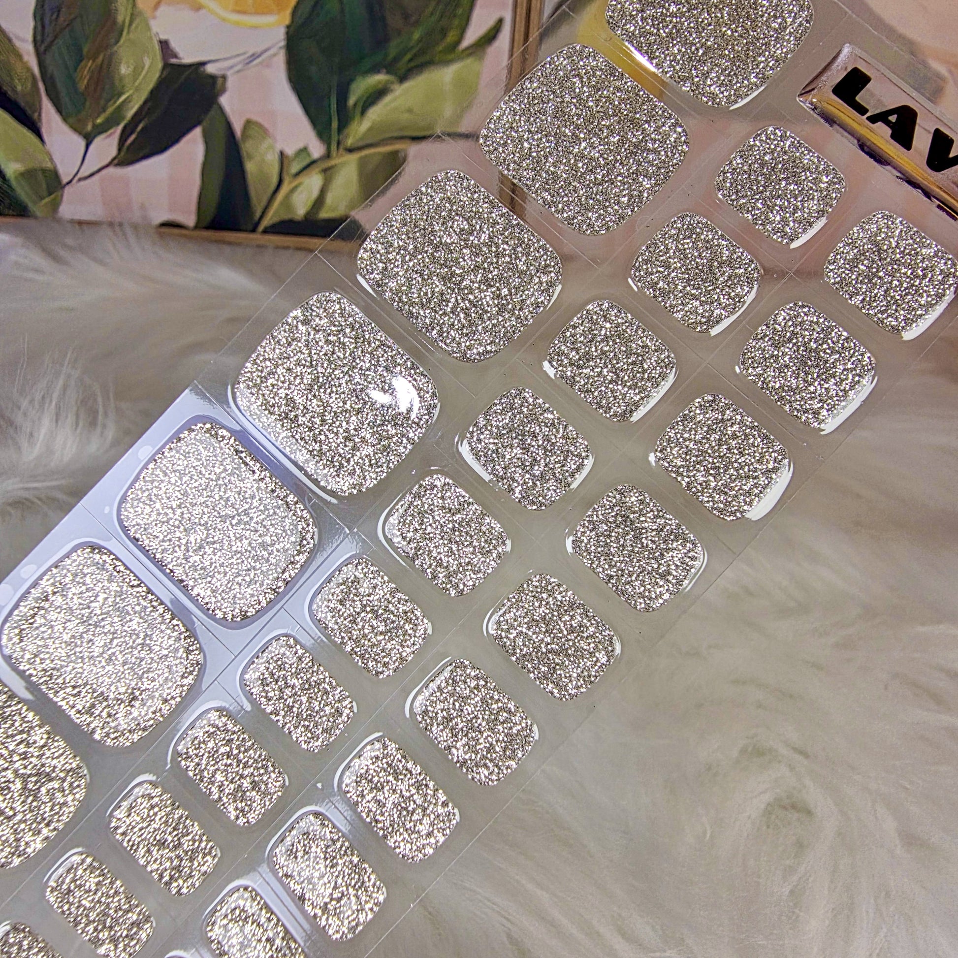 Sterling Shine is a full–glitter silver design that instantly brightens your entire look. Packed with fine, high-shine sparkles, it catches the light beautifully with every step — perfect for parties, holidays, special occasions, or whenever you want your toes to shine with maximum impact. Despite its bold look, the finish stays smooth, even, and ultra-refined.